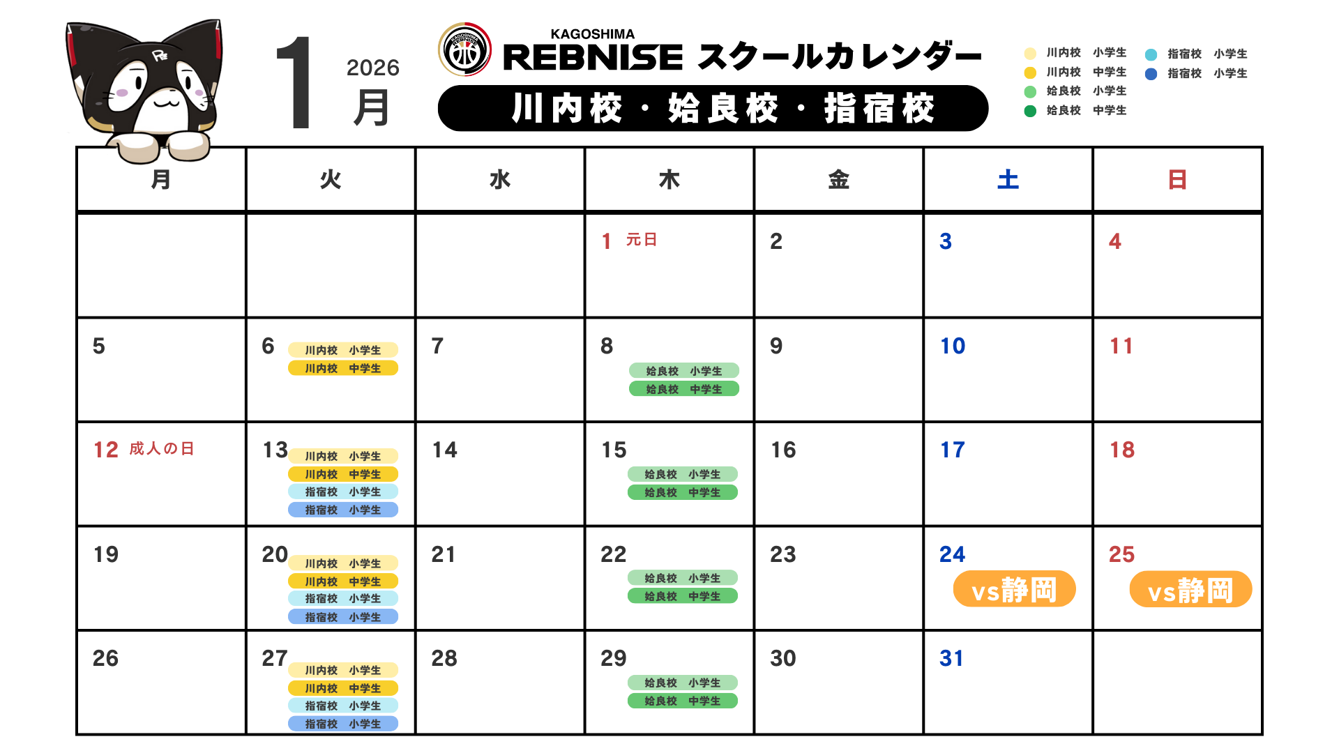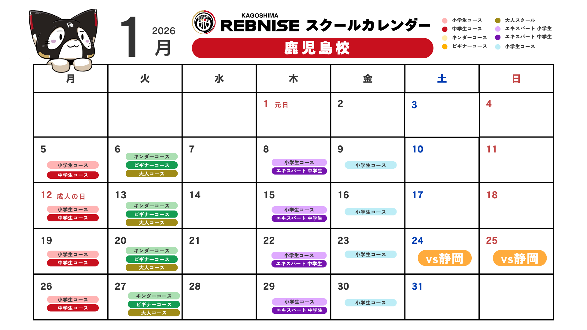 1月 スクールカレンダー